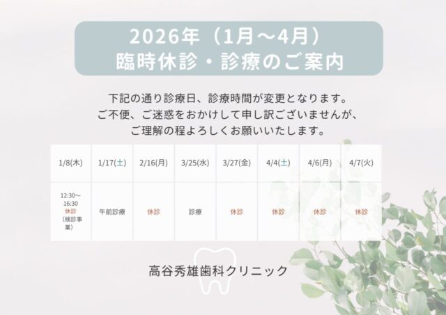 2026年(1月~4月)臨時休診・診療のご案内